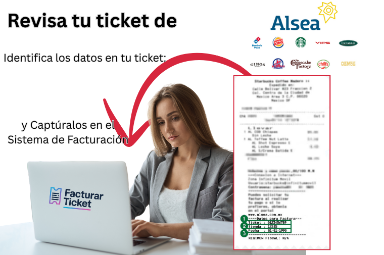 Vas a escribir tu RFC en el sistema de facturación de ticket, y tus demás datos fiscales: nombre o razón social, código postal, régimen fiscal y un correo electrónico para recibir una copia de la factura.