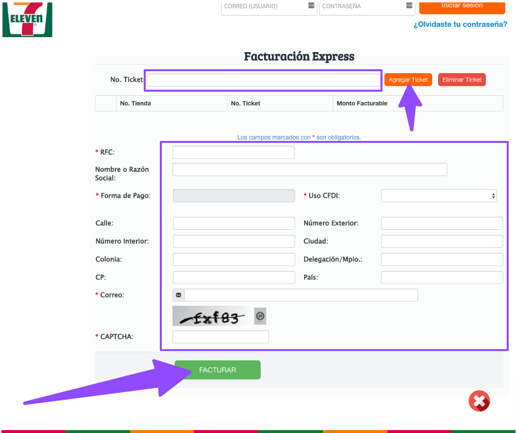 INSTRUCCIONES: Facturar ticket de 7 Eleven