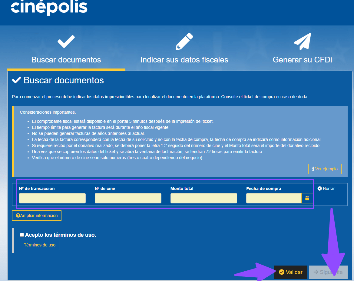 INSTRUCCIONES: Facturar ticket de Cinepolis