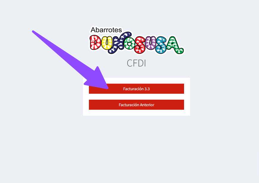 - Entrar al sistema de DUNOSUSA facturación correcto desde el botón "IR A FACTURAR", o encuentra la dirección en tu ticket de pago.