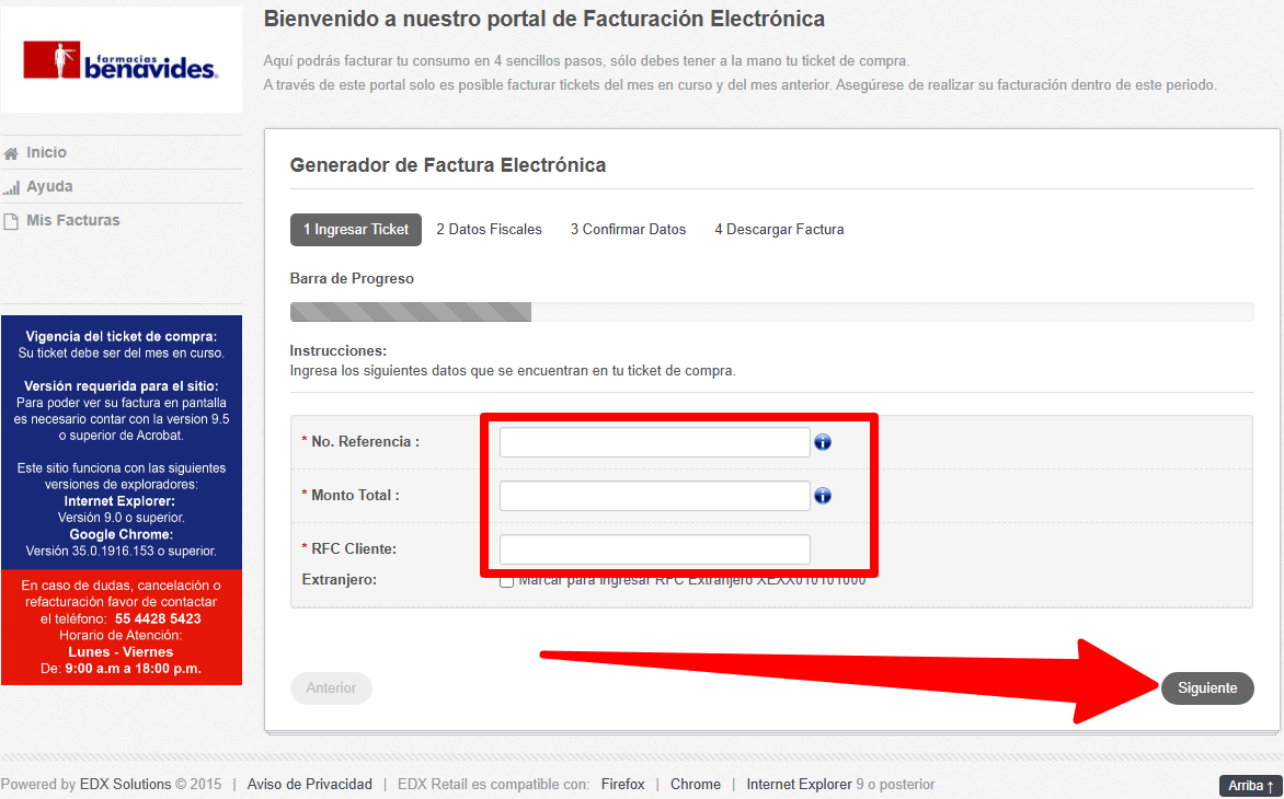 Ejemplo practico de como llenar el formulario del sistema para facturar Farmacias Benavides: