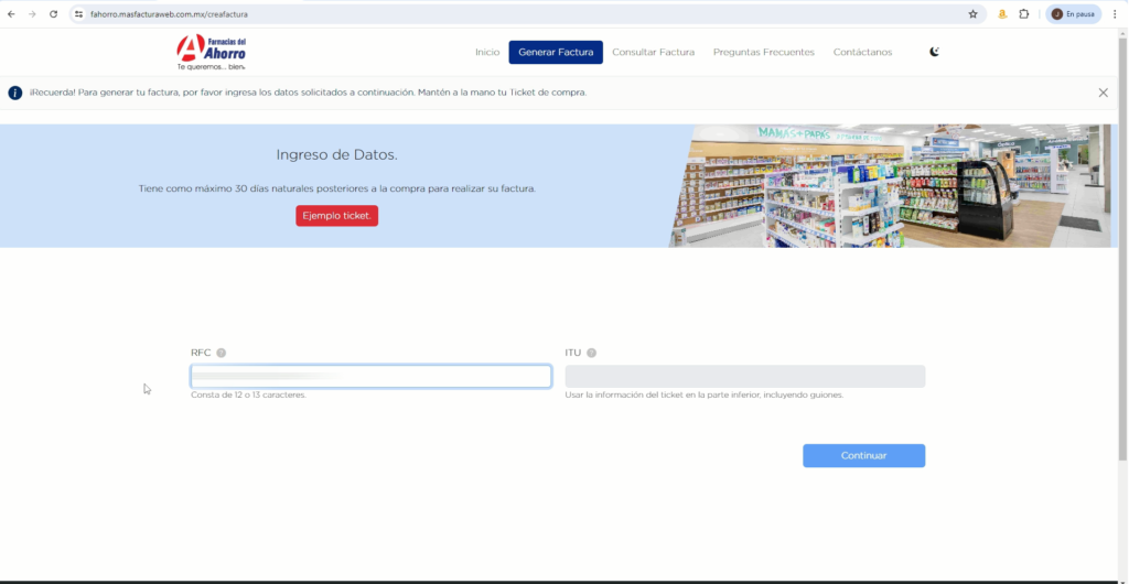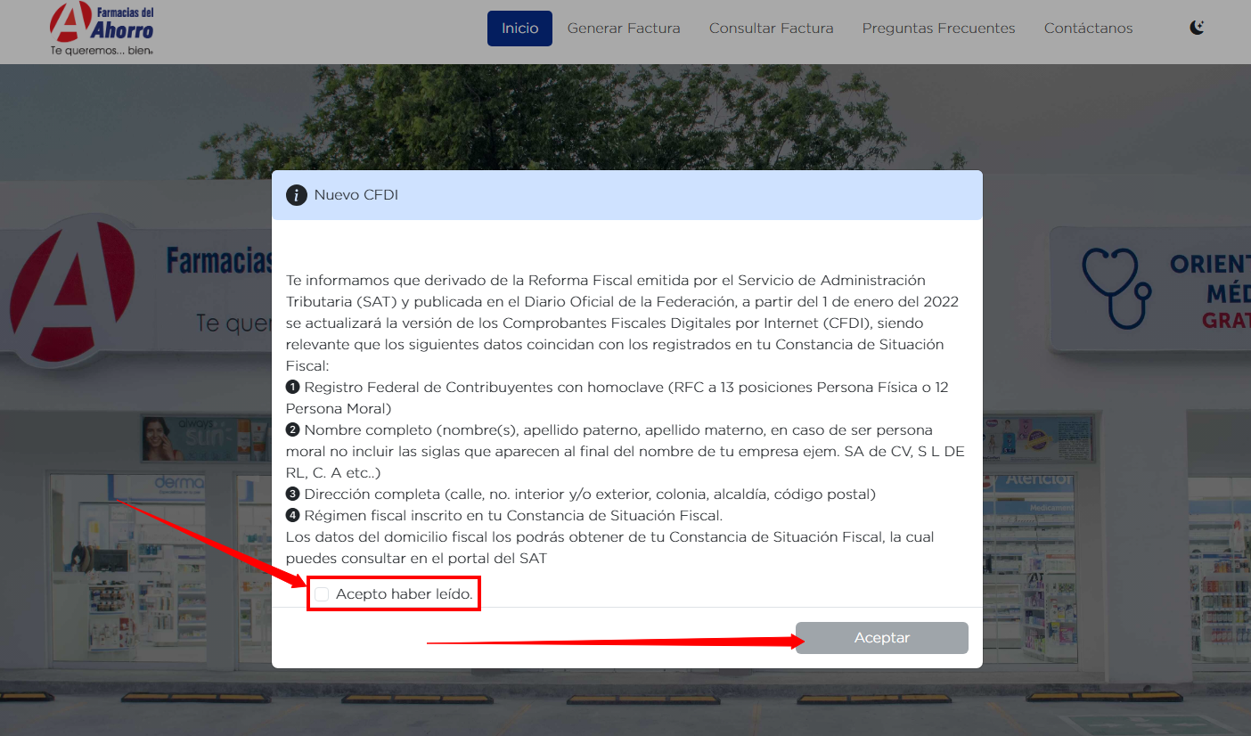 - Entra al sistema para facturar Farmacias del Ahorro.
