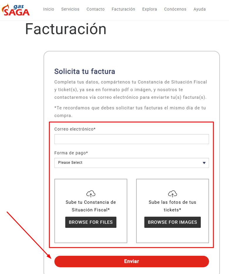 Requisitos para generar factura Gas SAGA