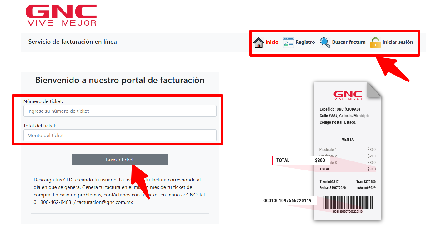 Ayuda para obtener tu factura GNC SUPLEMENTOS ALIMENTICIOS