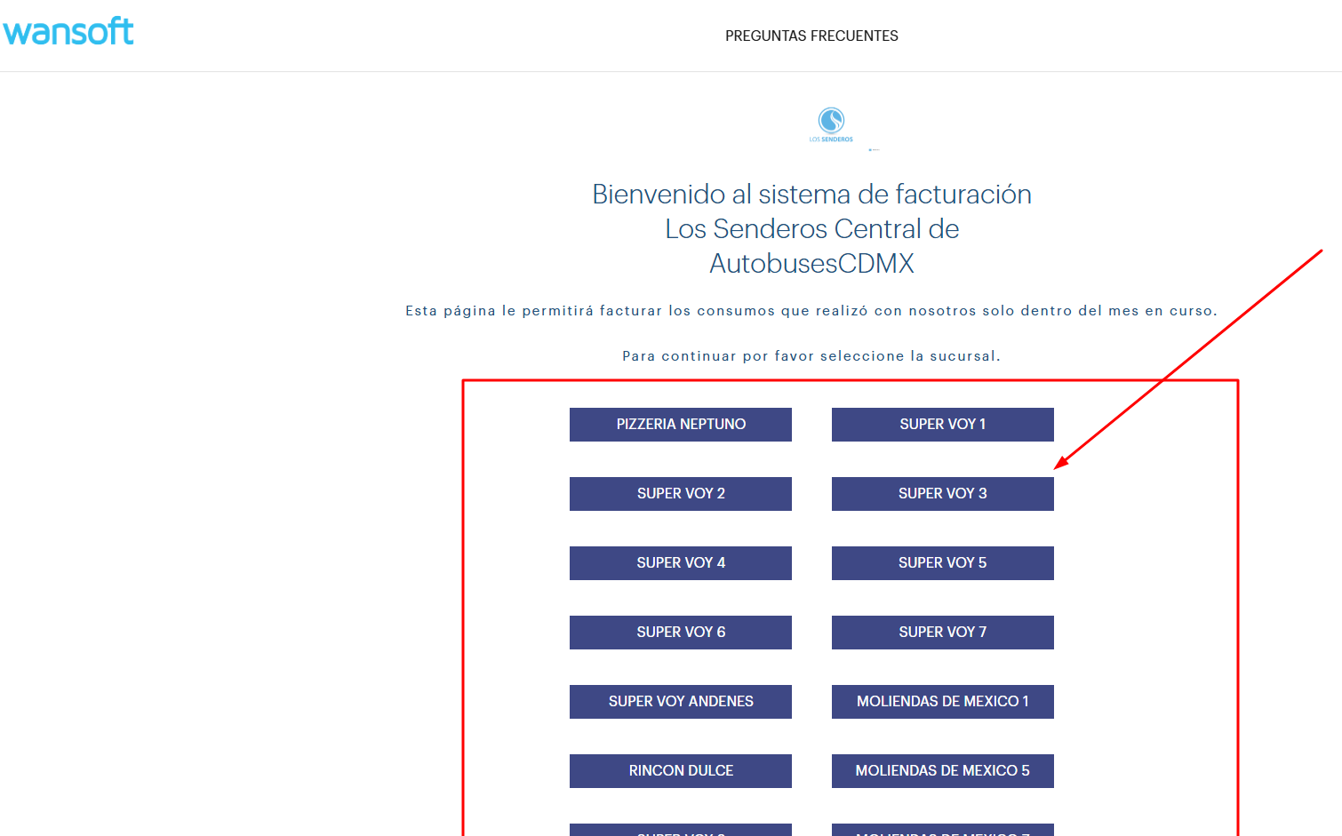 - Entra al sistema para facturar Los Senderos Central de Autobuses.