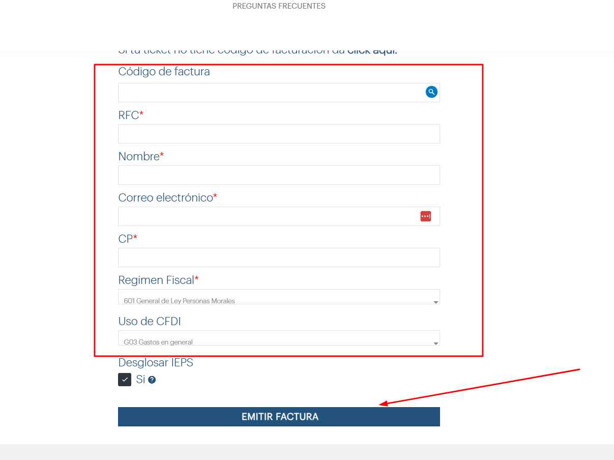 Requisitos para generar factura Los Senderos Central de Autobuses