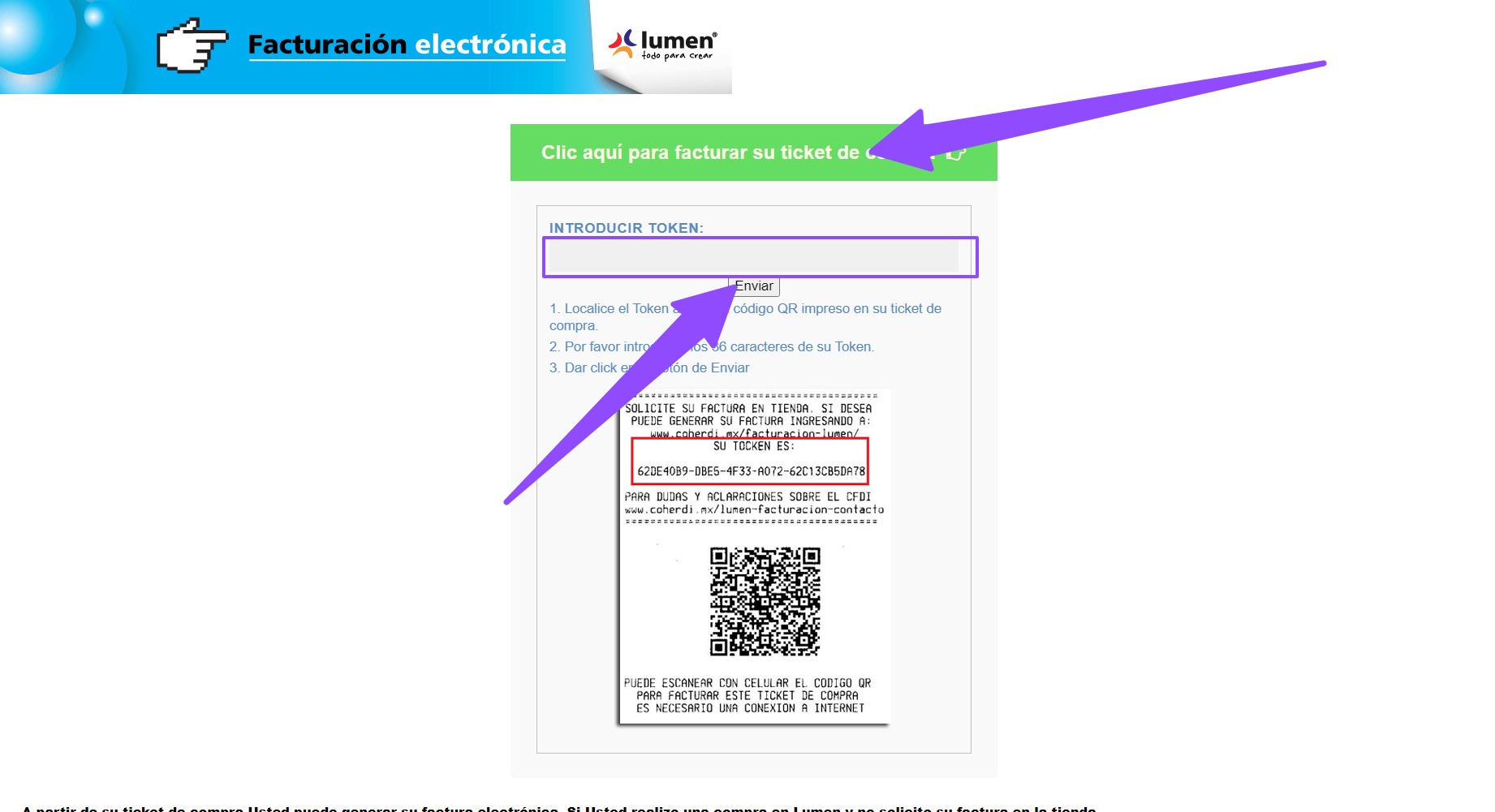 - Entrar al sistema de Lumen facturación correcto desde el botón "IR A FACTURAR", o encuentra la dirección en tu ticket de pago.