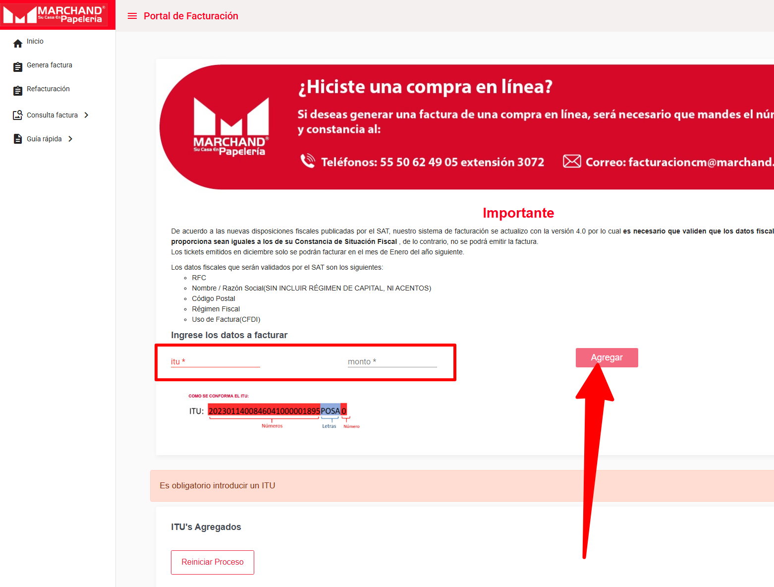 - Contactar con Papelería Casa Marchand para que te ayuden con tu factura