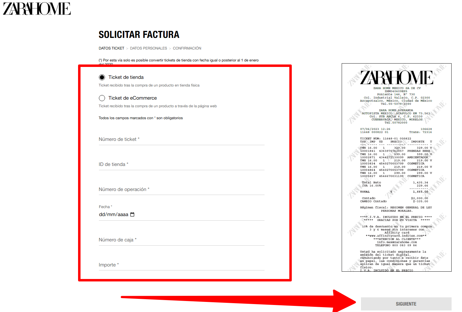 INSTRUCCIONES: Facturar ticket de Zara Home