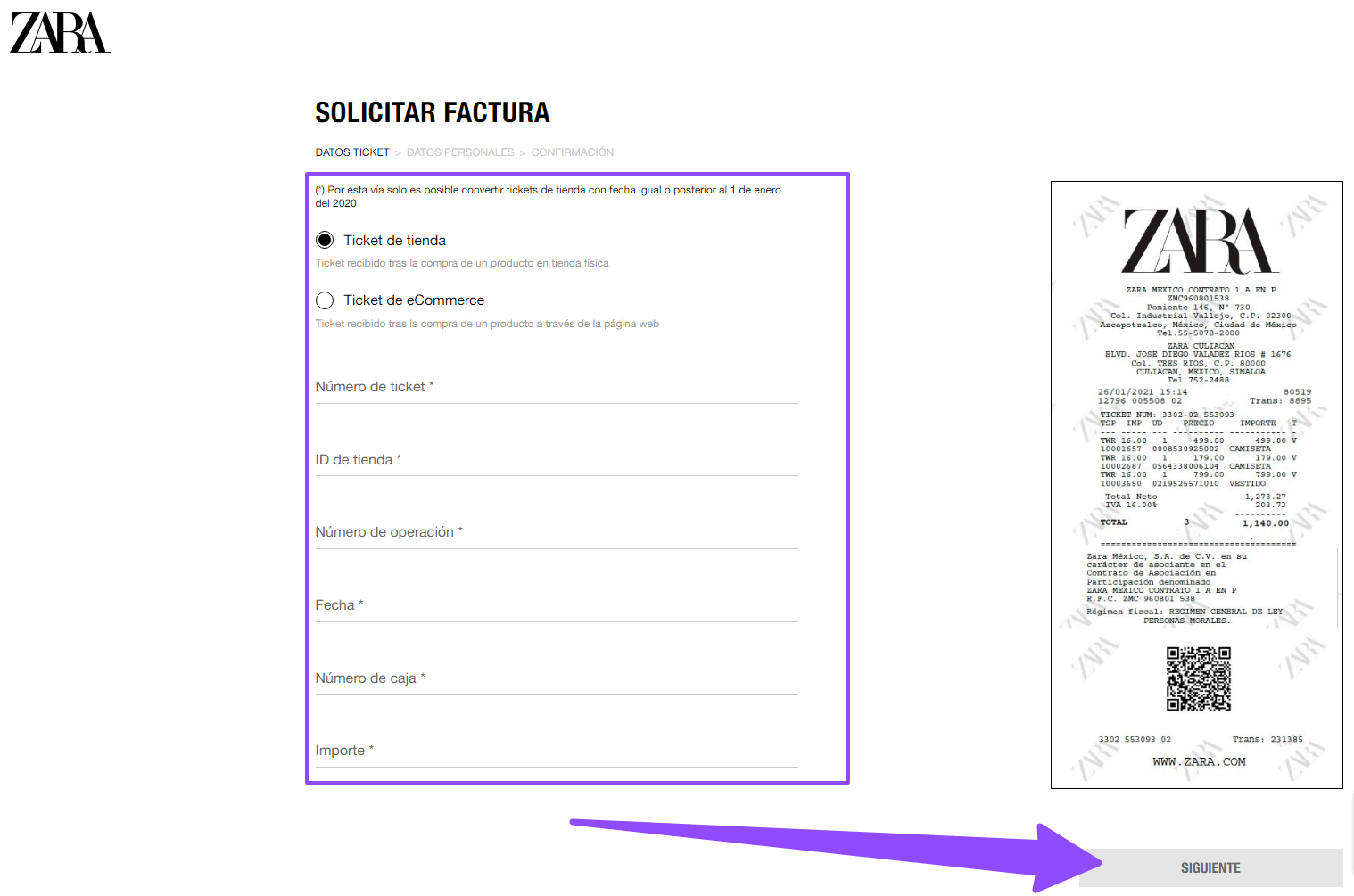 - Tener tu ticket ZARA de pago en buen estado para la captura de los datos correspondientes en el formulario del sistema de facturación.